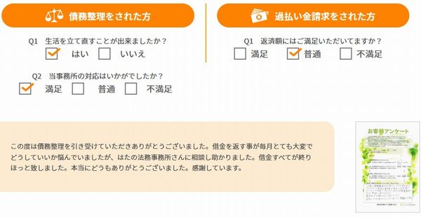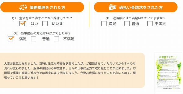 はたの法務事務所で債務整理や借金返済について相談した人の口コミや評判はこのようになっています。